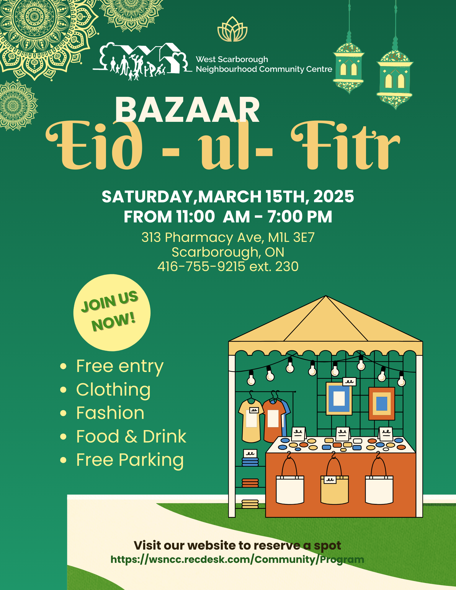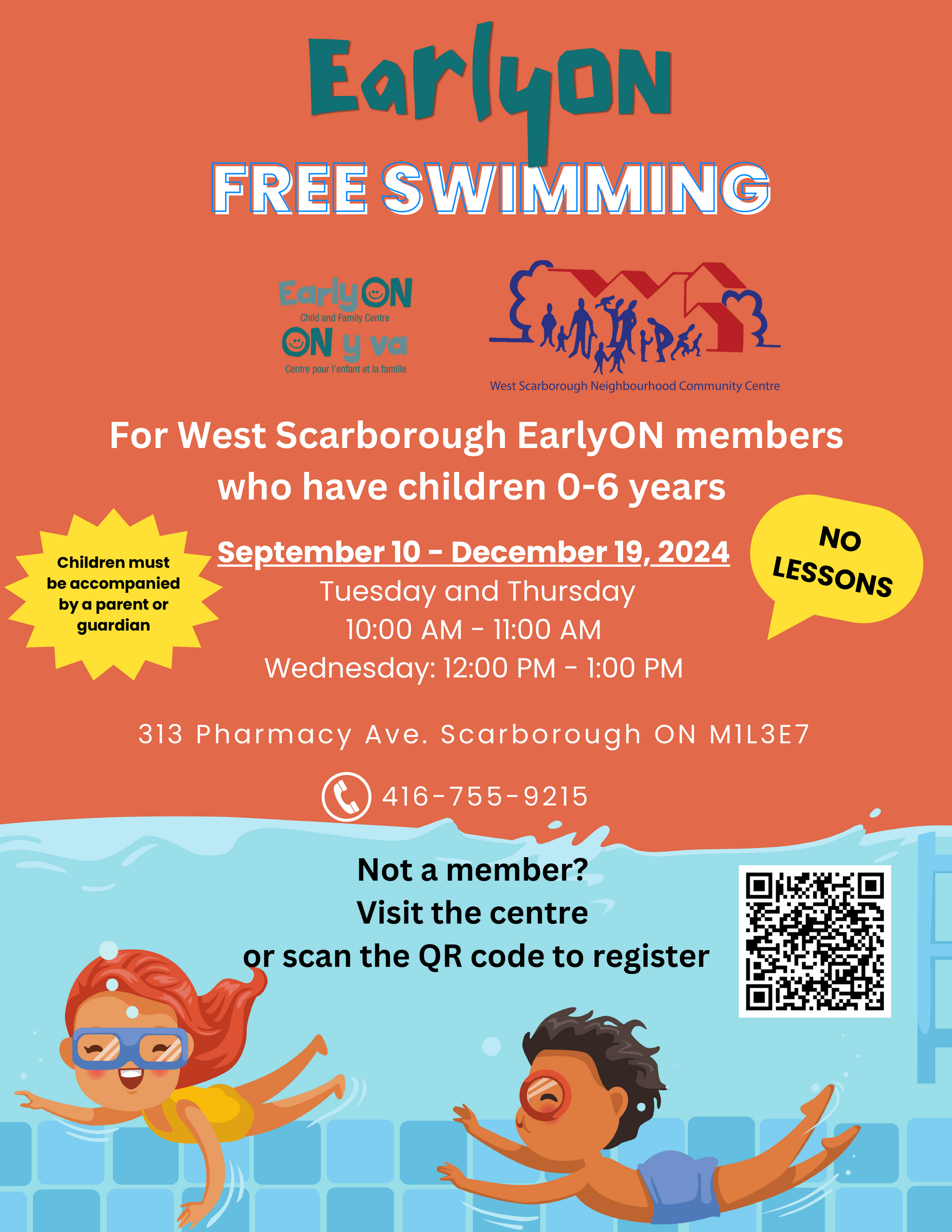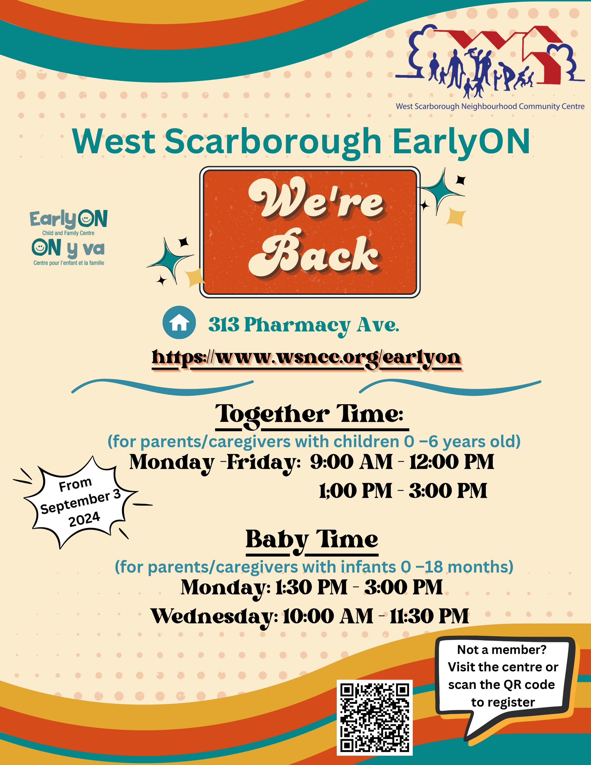 Portes ouvertes au WSNCCArticlePublié le 3 septembre 2024 Le centre communautaire du quartier de West Scarborough ouvre ses portes le samedi 28 septembre pour une journée de plaisir, de nourriture et de communauté. Profitez de visites de bâtiments, d'activités pour enfants, d'un marché WS et d'une représentation autochtone spéciale de 11 h à 11 h 45. Cliquez sur le lien pour en savoir plus !
