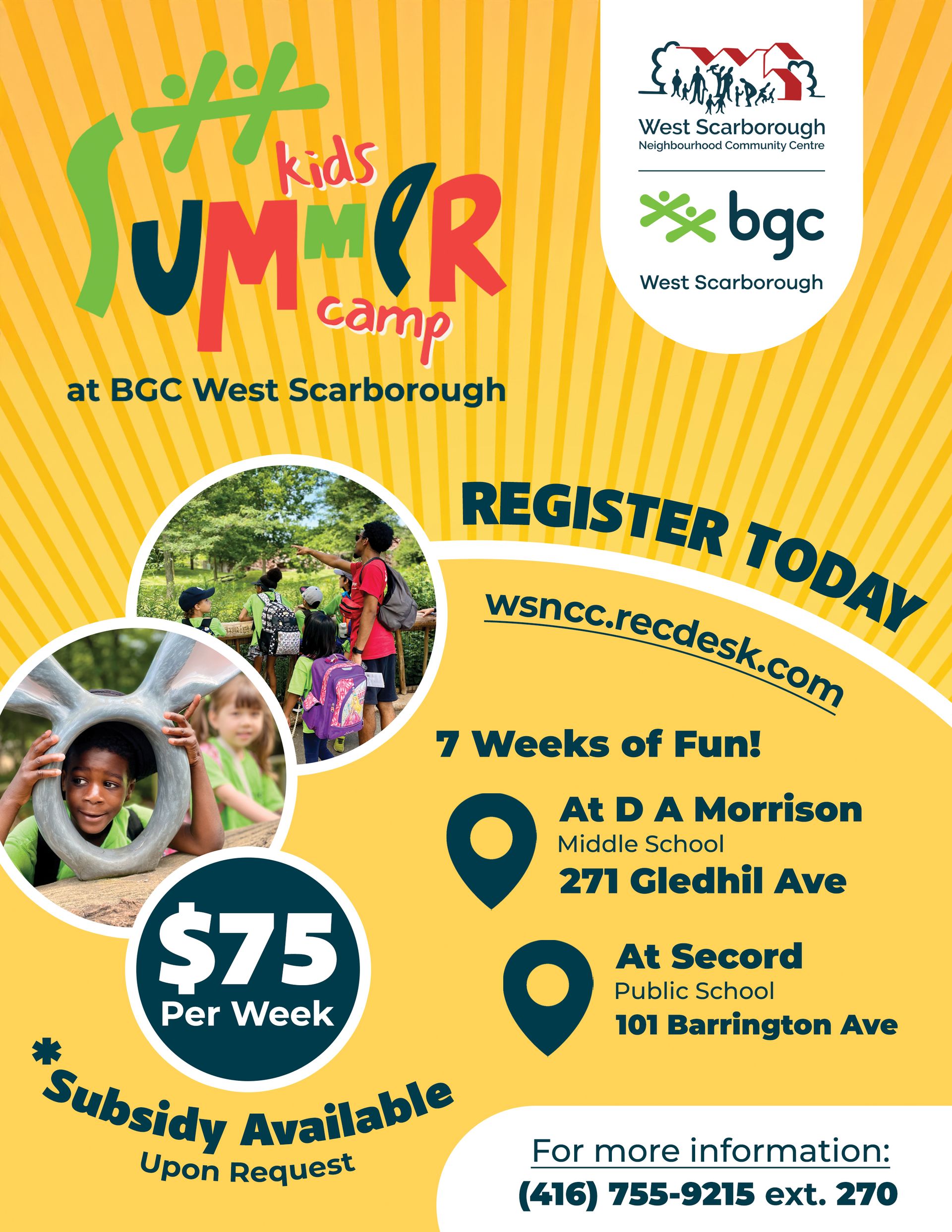 At the West Scarborough Neighbourhood Community Centre, we offer programs for every stage of life. From EarlyON for young families, to BGC West Scarborough for children and youth, and engaging activities for Seniors — we’re here to create a welcoming, inclusive space for everyone.